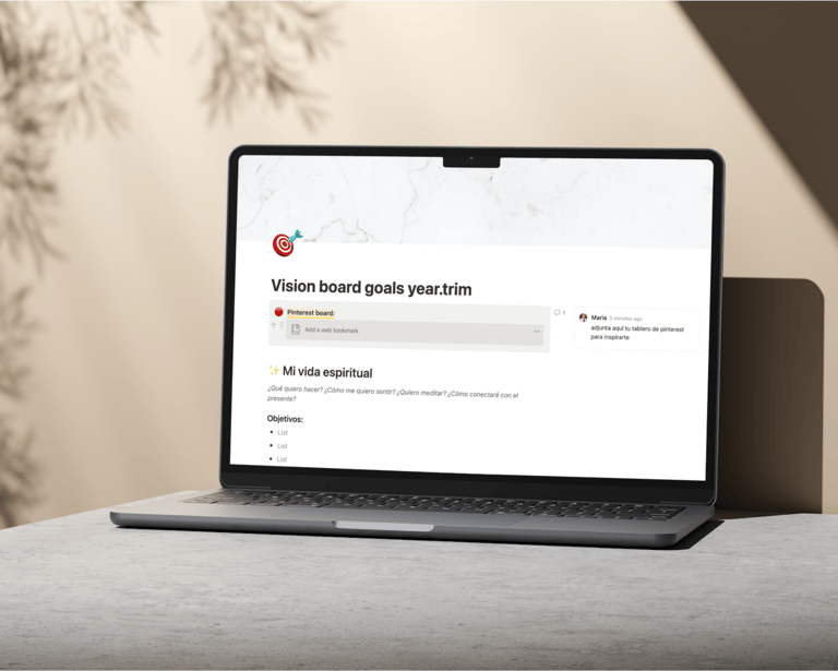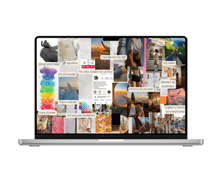 Un vision board es una representación visual de tus metas, sueños y deseos. Es una colección de imágenes, palabras y frases que representan lo que deseas lograr. Puedes crearlo en formato físico, o en formato digital, que es como yo lo hago y te voy a contar aquí, para poder llevarlo siempre contigo.