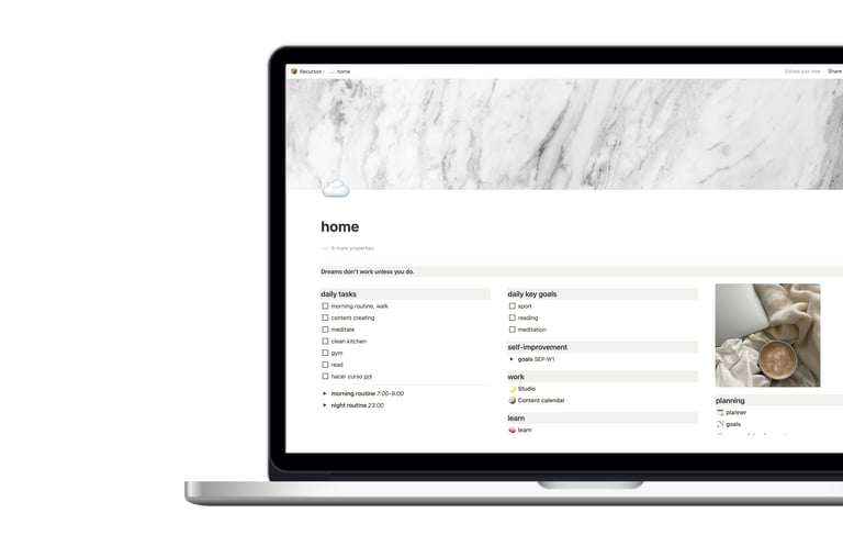 La plantilla de página de inicio que uso a diario, que me llevó meses diseñar y perfeccionar y llevo años usando. Incluye miniclass en vídeo.